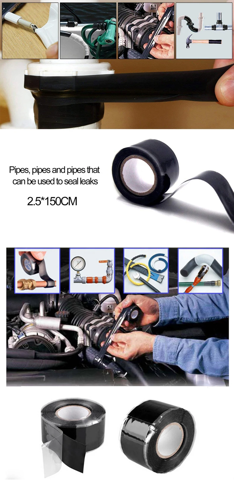 2,5×150 cm universali, itin stipri, vandeniui atspari silikoninė juosta