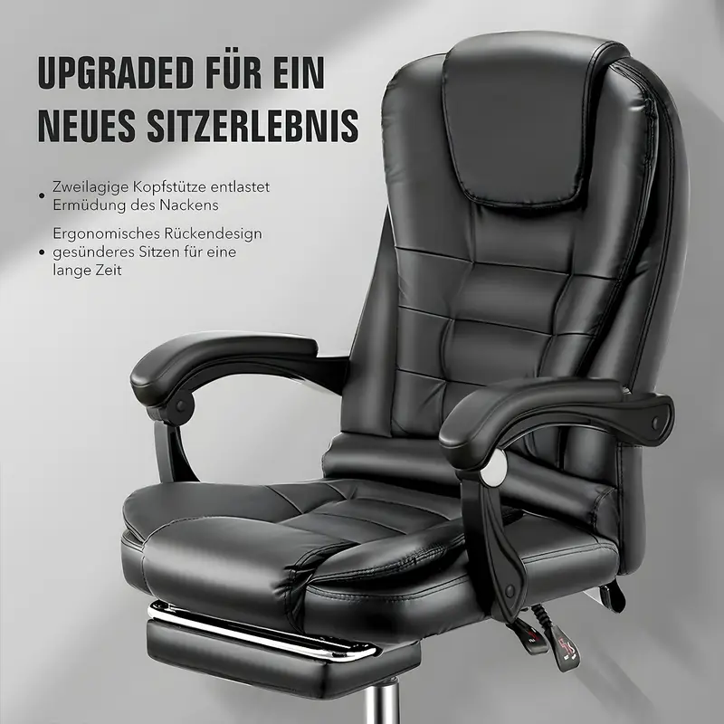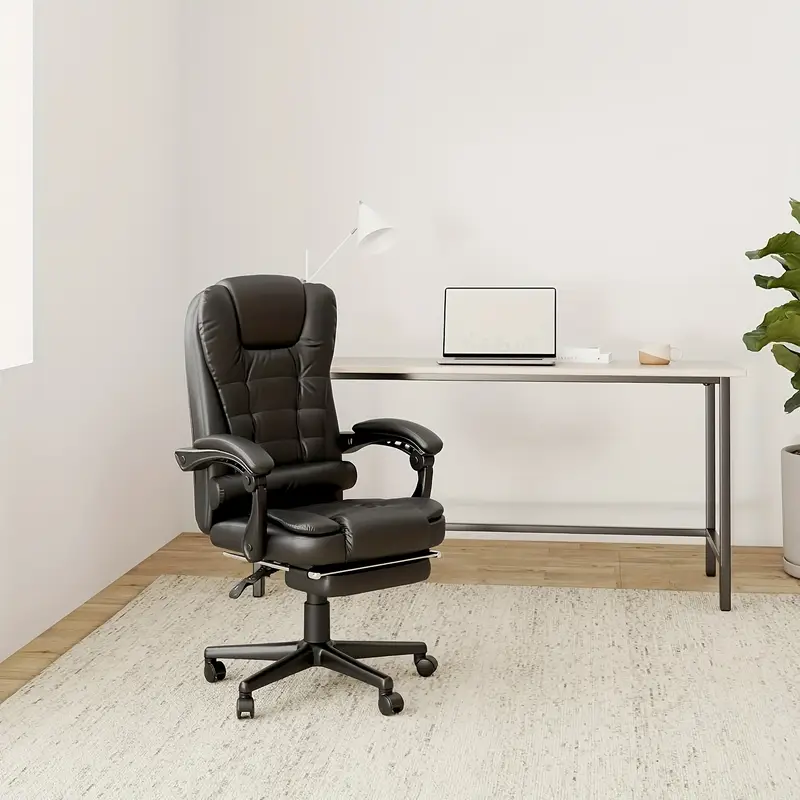 Suteikite savo darbo aplinkai komforto ir stiliaus su šia ergonomiška biuro kėde, pagaminta iš aukštos kokybės PU odos. Patogus atlošas, minkštos porankės bei ištraukiamas pakojis leis jaustis patogiai net ilgiausių darbo dienų metu.