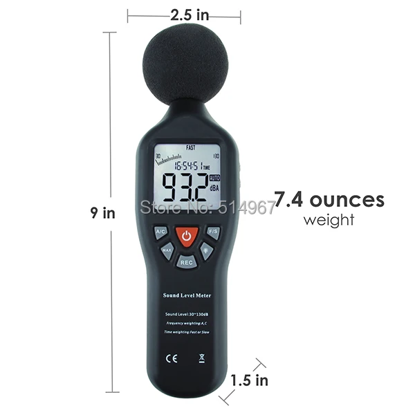 - Matavimo diapazonas: 30 ~ 130 dBA