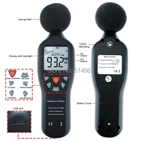 - Matavimo diapazonas: 30 ~ 130 dB