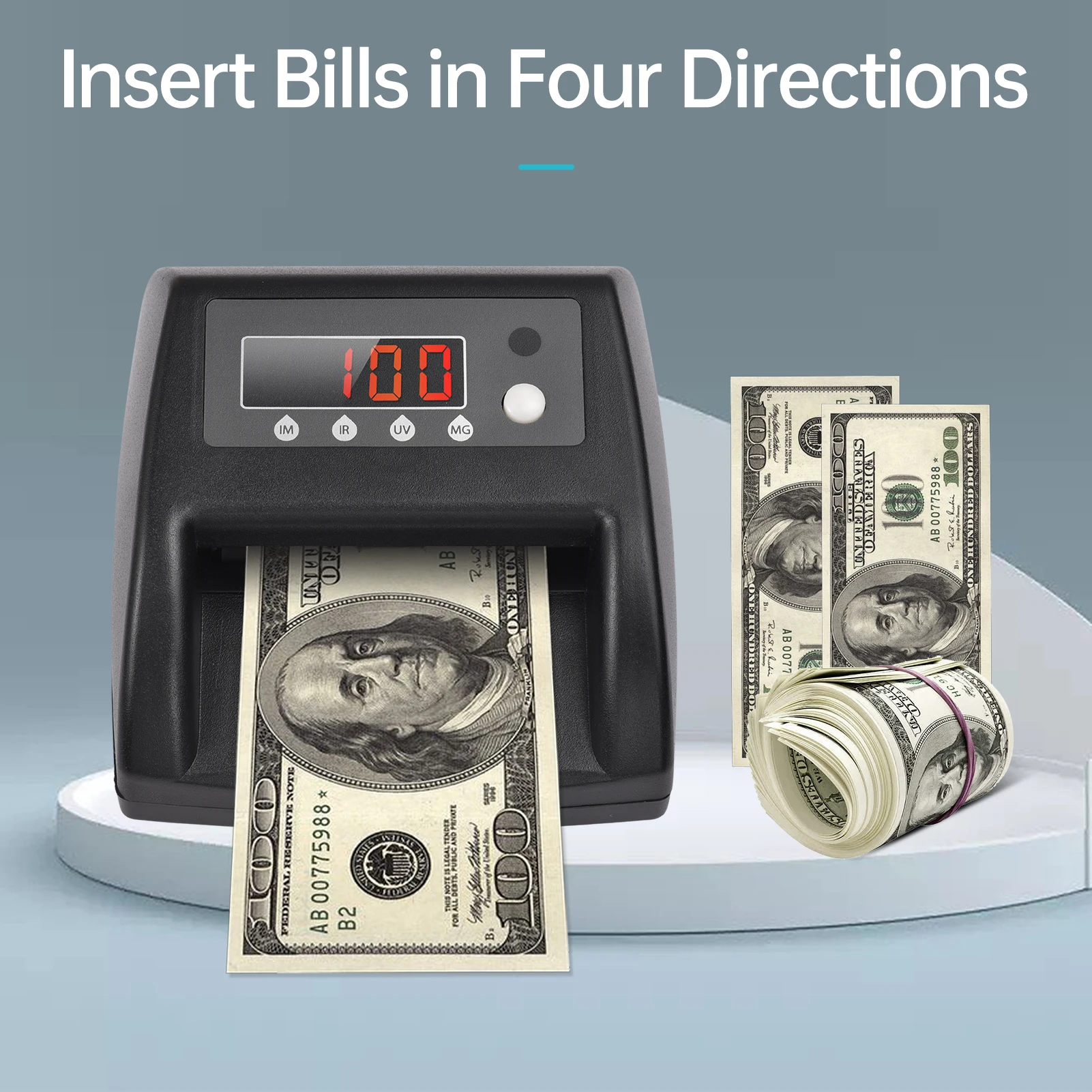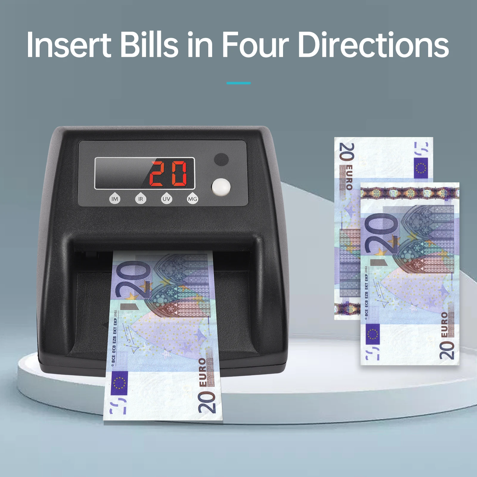Universalus banknotų įdėjimas – gali būti įdėti į detektorių bet kokia kryptimi, todėl lengva ir patogu naudoti.