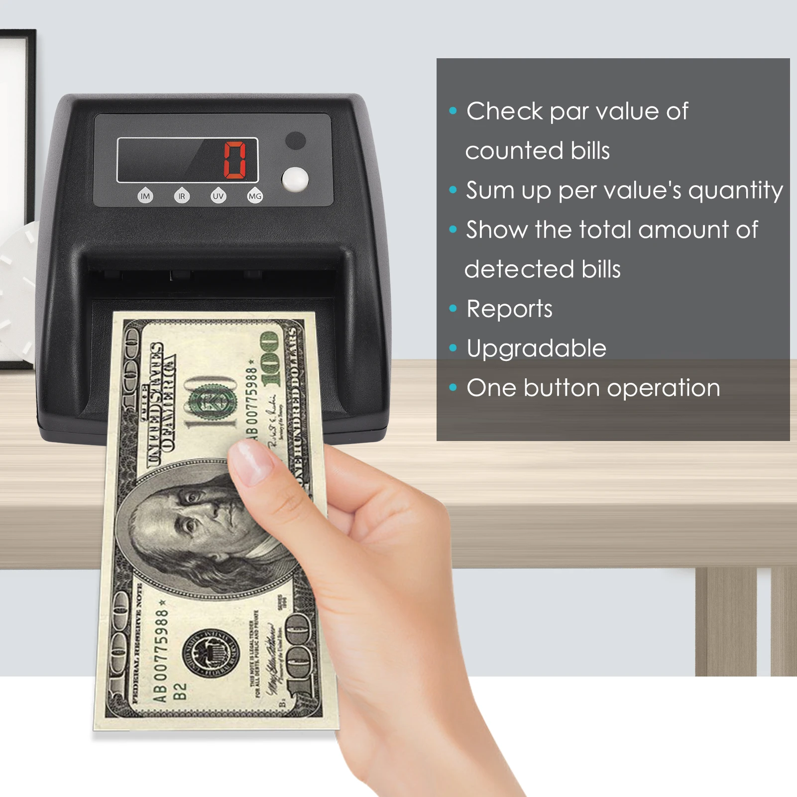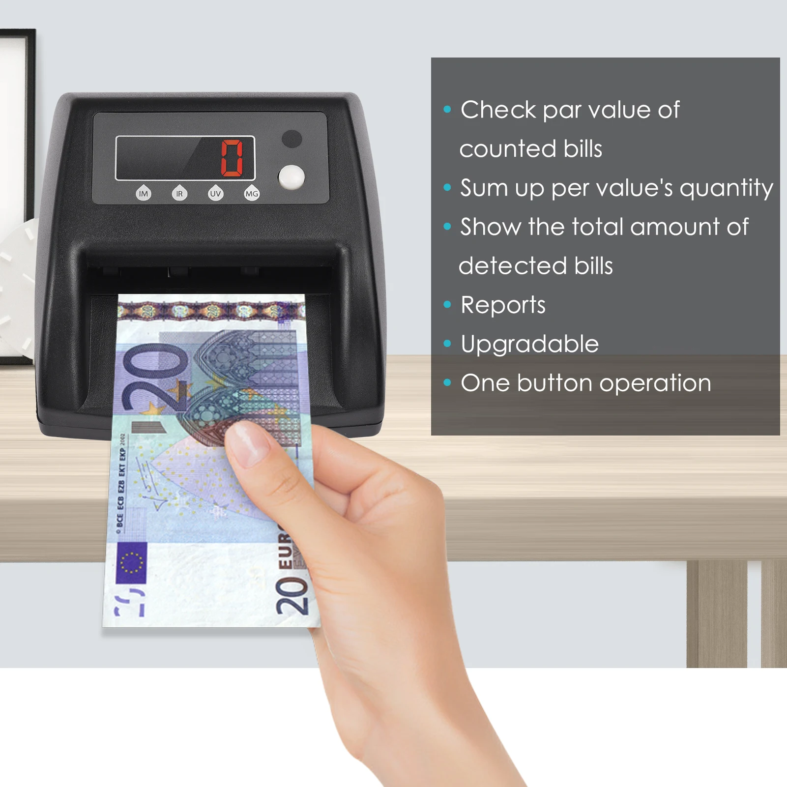 Kelios funkcijos – Gali patikrinti suskaičiuotų sąskaitų nominalią vertę, susumuoti kiekvieno nominalo kiekį ir parodyti bendrą aptiktų sąskaitų sumą, todėl tai yra universalus įrankis bet kuriam verslui.