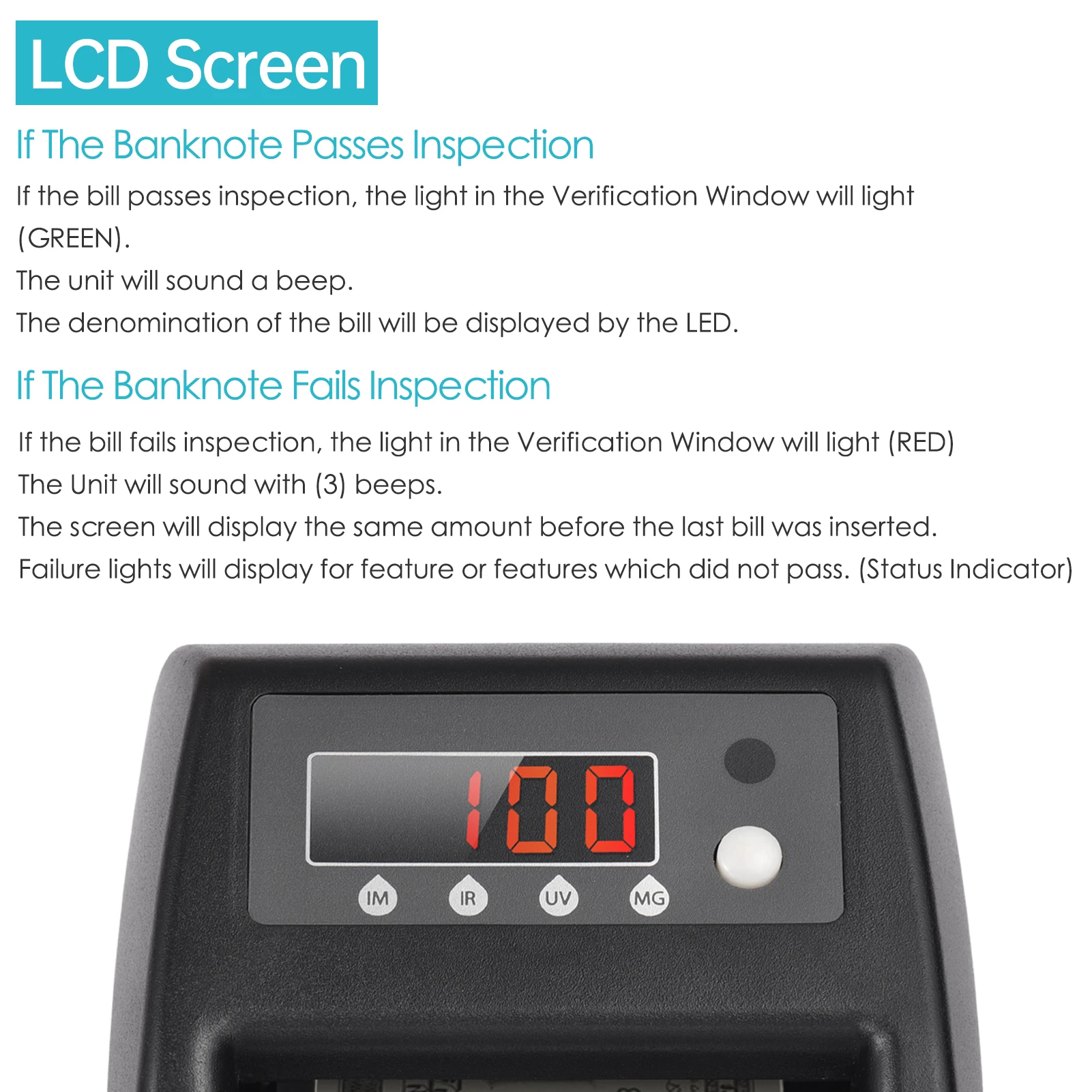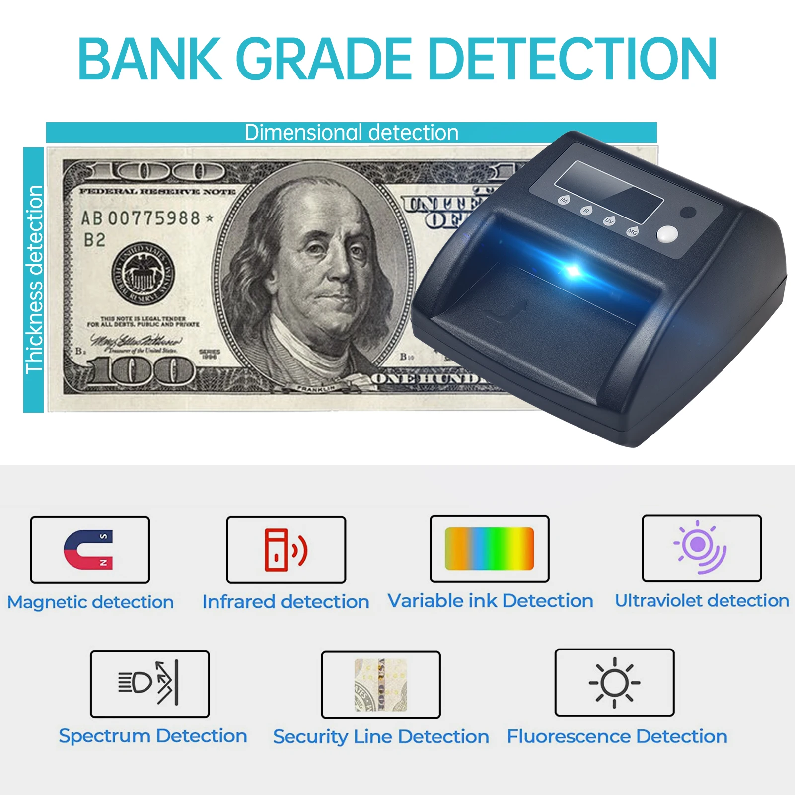 Greitas ir tikslus patikrinimas – Su 0.5s / lapo greitu patvirtinimu, padirbtų banknotų detektorius taupo laiką ir pastangas, tuo pačiu sumažindamas žmogiškųjų klaidų skaičių, apsaugodamas jūsų pinigus ir verslą.