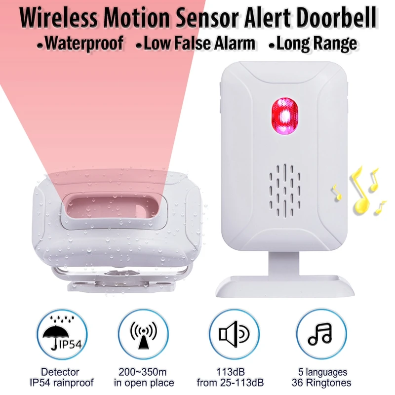 PIR judesio detektoriaus aliarmo signalas, skirtas parduotuvėms, biurui, lauko ir namų durims
